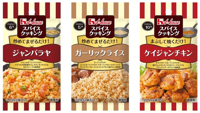 ハウス食品は、メニュー専用シーズニング「スパイスクッキング」シリーズから、<ジャンバラヤ><ガーリックライス><ケイジャンチキン>の3アイテムを、8月14日からスーパーなどで発売します。「ごはん」や「鶏肉」を材料に、トレンドのアメリカンメニューの味わいを、家庭で簡単に楽しむことができます。2人分×2袋、オープン価格(税別参考小売価格125円)。