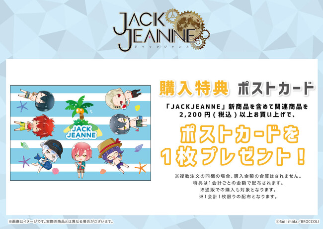 『ジャックジャンヌ』の新作グッズを含む関連商品を2,200円(税込)以上お買い上げいただいた方には、ポストカード(全1種)をプレゼント!