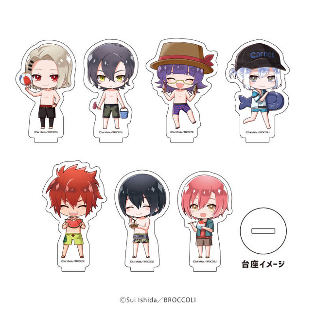 アクリルぷちスタンドはそれぞれ7人の全身を描いています。ビーチなどで写真を撮って、一緒に夏を満喫しましょう♪