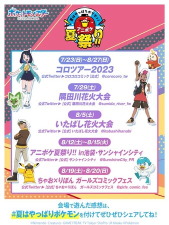 7月から全国各地で開催される「コロツアー2023」を皮切りに、おとなもこどもも一緒に楽しめるイベントを予定しています。続報はテレビアニメ「ポケットモンスター」公式Twitterほか、各イベントの公式HP・Twitterにて発表致しますので、お見逃しなく!