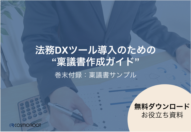 契約業務一連の流れをDX化するクラウドサービス「リーガレッジ」を提供する、株式会社コスモルート(本社:東京都千代田区 代表取締役社長:島本 鉄弥)は、「法務DXツール導入のための”稟議書作成ガイド”」を公開いたしました。
