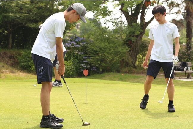 国際高等学校(全寮制)では、6月末に高校一年生は保見ゴルフクラブ(愛知県豊田市)でゴルフ大会を実施しました。国際高等学校の体育の授業では、ゴルフのティーチング・プロである立浦珠唯教諭の指導のもと、全生徒が体育の授業でゴルフを学びます。今回のゴルフ大会は1年間の集大成とも言える行事となり、生徒は自分の実力を試しながら実際のコースでのプレイを楽しみました。