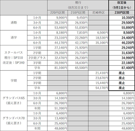 ※尼崎特区における「学期定期」は販売を終了します。