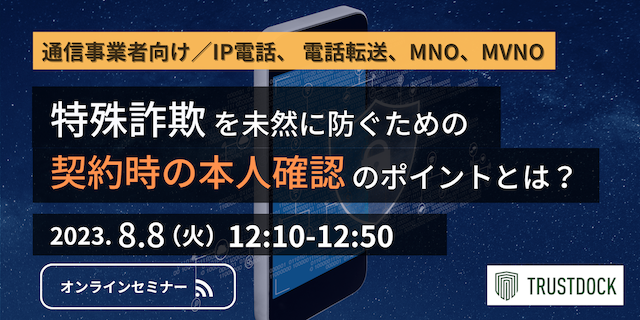 TRUSTDOCK 、「通信事業者向け|特殊詐欺を未然に防ぐための契約時の本人確認のポイントとは?」ウェビナーを2023年8月8日に開催