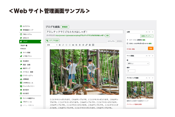 サンプルサイト:https://connect-l.jp/sample/camp/