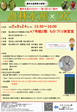 【岡山理科大学】農林水産DXセミナー(第1回)|日時:2023年8月24日(木)13:30~16:00開催!参加無料
