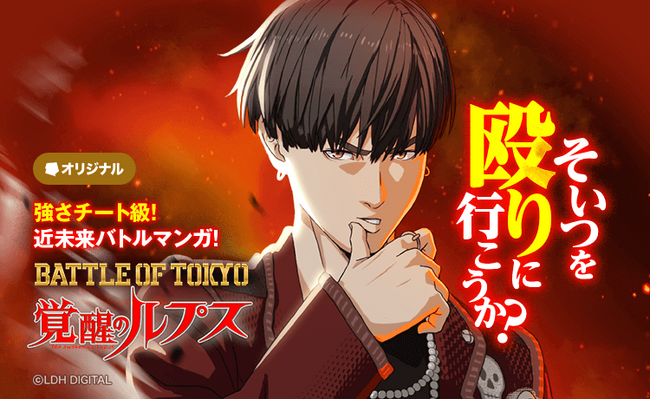LDHが新たに創造する次世代総合エンタテインメントプロジェクト「BATTLE OF TOKYO」は、Jr.EXILE世代のアーティスト(GENERATIONS、THE RAMPAGE、FANTASTICS、BALLISTIK BOYZ)のメンバーが自ら創造したキャラクターとして登場し、架空の未来都市「超東京」を舞台にバトルを繰り広げます。音楽、小説、アニメ、ライブなどさまざまなメディアがクロスオーバーする壮大な展開が話題を呼んでおり、『BATTLE OF TOKYO「覚醒のルプス」』にて本プロジェクト初のwebtoon化を果たしました。