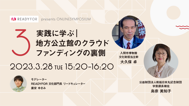 日本初・国内最大級のクラウドファンディングサービス「READYFOR」を運営するREADYFOR株式会社は、去る2023年3月28日(火)に、文化芸術に関わる皆さまに向けてオンラインシンポジウムを開催いたしました。大変好評につき、9月1日(金)までにお申し込みくださった方に限定して、再放送を行うことにいたしました。