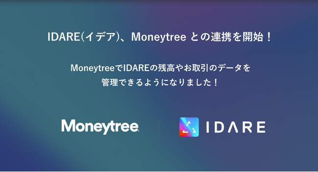 「マネーツリー」が提供する個人向け資産管理アプリ「Moneytree(R)」サービスにおいて、「IDARE(イデア)」との連携を行っていただくことでIDAREの残高や取引の履歴を確認することができるようになります。