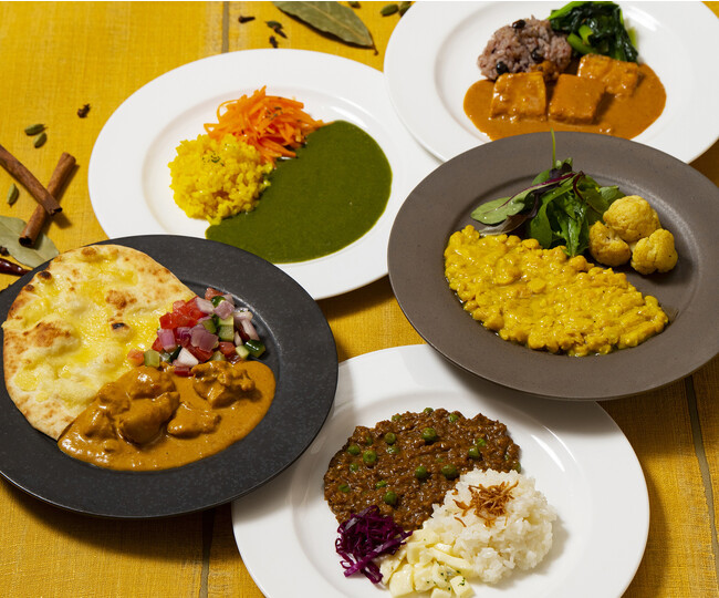 普段は日替わりでカレー2種類のところ、8月はカレーメニューが5種類にパワーアップ。レシピを少しずつアップデートしながら受け継がれてきた秘伝のルーをベースにした「バターチキン」と「フィッシュマサラ」や、ひき肉とグリーンピースのカレー「キーママタール」、ほうれん草とチーズのカレー「サグパニール」、緑豆とひよこ豆のカレー「ダルカレー」の5種類を毎日ご提供します。カレーに合わせるのは、白米と十六黒米に加え、8月限定でターメリックライスと窯焼きのナン・チーズナンも登場。夏の暑さを吹き飛ばすスタミナメニューや、涼を感じる夏野菜のメニューなど、夏においしいメニューが満載です。