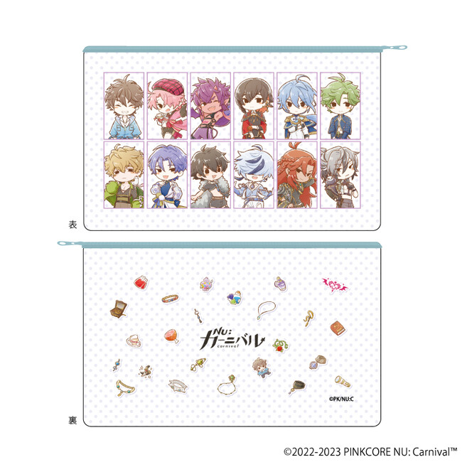 文具やメイク道具といった小物を入れるのに最適な11.3×20cmのキャラポーチ。シンプルなドット柄に12人が大集合したデザインとなっており、カバンから取り出すたびにキュンキュンすること間違いなしです!