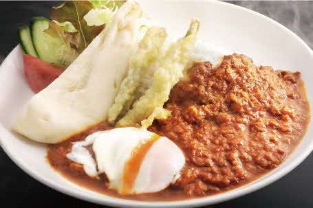 道の駅のお食事処、たばくまんの大人気メニュー!複数のスパイスが絡み合い醸し出す複雑で本格的なチキンカレーです。