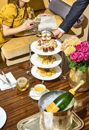 セントレジスの創業一族であるアスター家の象徴的存在であり、19世紀後半にニューヨークの社交界を牽引したキャロライン・アスターが、上流階級内で厳選したゲストをもてなすために用意したアフタヌーンティーは、今なおリチュアル(儀式)の一つとして、各国のセントレジスで提供されています。期間限定のロイヤルアフタヌーンティーでは、お客様はアスター夫人の邸宅へ招かれるかのように、12階レセプションフロアでチェックイン手続きをし、アスター夫人が催した美しい花々を飾ったティーパーティーをイメージして彩った、贅を尽くしたロイヤルスイートへと誘われます。ビクトリアサンドイッチケーキや、ジャムとクロテッドクリームでお召し上がりいただくスコーン、サンドイッチ、キッシュなどのクラシックな英国式アフタヌーンティーと、最上階のお部屋からの美しい眺望とともに、クラシカルな雰囲気に浸る、優雅でこの上なく贅沢なひと時をお過ごしください。