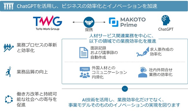 東洋ワークグループとMAKOTO Primeが提携、ChatGPTを活用し、ビジネスの効率化とイノベーションを加速