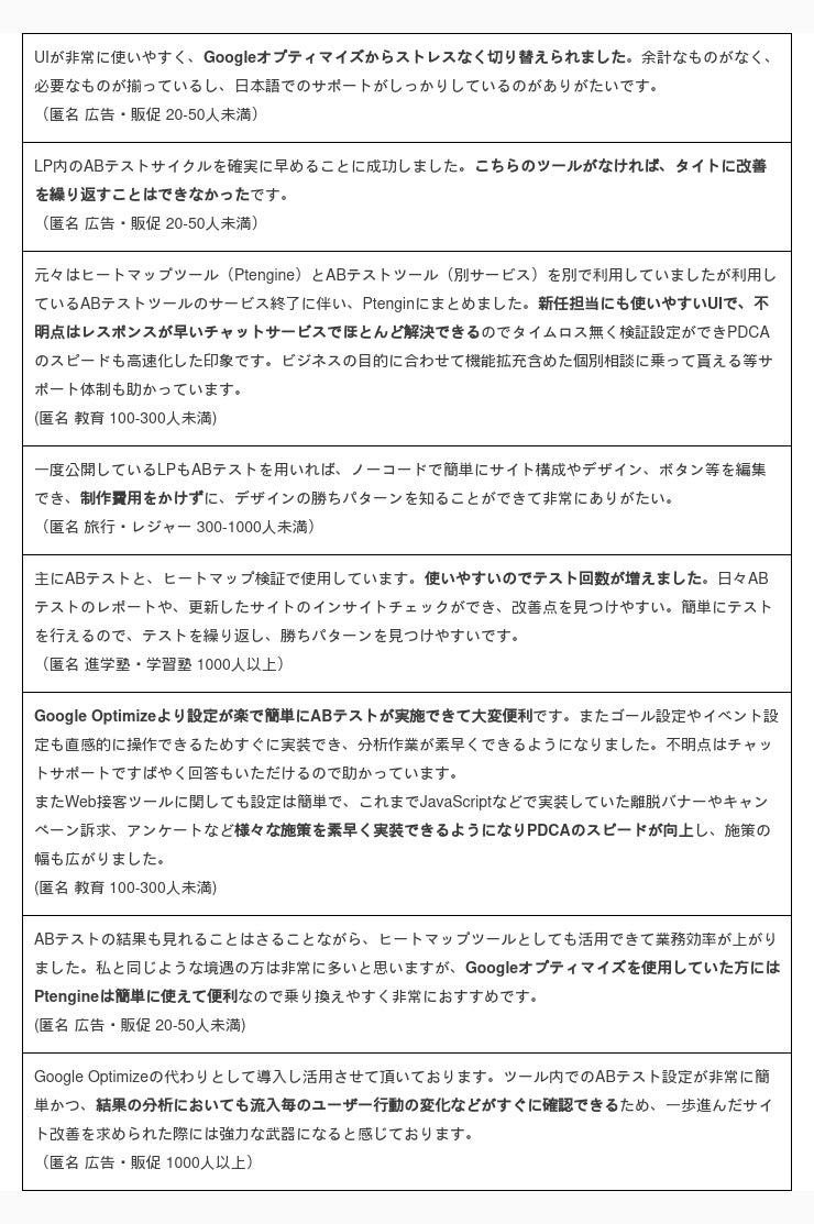 ▼PtengineのABテストを選んでいたいただいたお客様