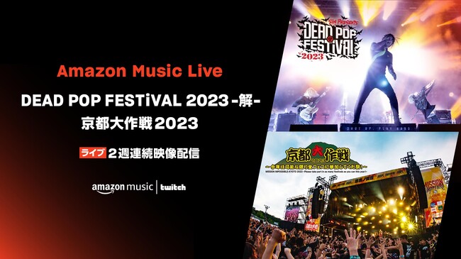 Amazon Musicは、8月8日(火)20時からSiMが主催した「DEAD POP FESTiVAL 2023 -解-」(6月24日、25日に神奈川県川崎市東扇島東公演特設会場にて開催)および、8月15日(火)、16日(水)20時から10-FEET主催「京都大作戦2023」(7月1日、2日に京都府宇治市の京都府立山城総合運動公園 太陽が丘特設野外ステージにて開催)のライブ収録映像をTwitchのAmazon Music Japan チャンネルにて配信します。3年振りに帰ってきた全開の夏フェスの模様を、主催アーティスト、出演アーティストの生トークとともにお楽しみいただけます。