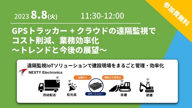 【8/8開催 無料共催ウェビナー】AIoTクラウドとネクスティ エレクトロニクス社が「GPSトラッカー + クラウドの遠隔監視でコスト削減、業務効率化~トレンドと今後の展望~」について共催ウェビナーを開催