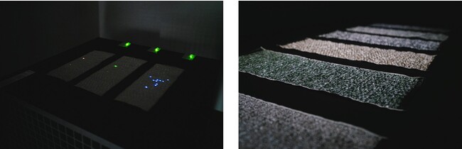 「WP007 <Pixels>」:ドットマトリックス状に発光する織物(*)