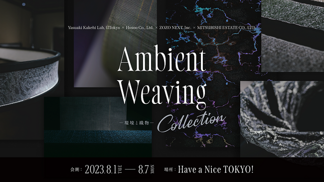 株式会社ZOZO NEXT(本社:千葉県千葉市 代表取締役CEO:澤田宏太郎 以下、ZOZO NEXT)、東京大学大学院情報学環(所在地:東京都文京区 学環長:山内祐平 以下、東京大学)筧康明研究室(主宰:筧康明教授)、株式会社 細尾(本社:京都市中京区 代表取締役社長:細尾真孝 以下、細尾)、三菱地所株式会社(本社:東京都千代田区 代表執行役 執行役社長:中島 篤 以下、三菱地所)は、ZOZO NEXT・東京大学・細尾による共同研究プロジェクトの作品展示イベント“Ambient Weaving Collection --環境と織物”を、本日8月1日(火)から8月7日(月)までの7日間、東京丸の内にあるツーリスト・コミュニケーション・センター「Have a Nice TOKYO!(運営:三菱地所 以下、HaNT)」にて開催いたします。
