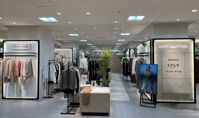 三陽商会が展開する婦人服ブランド「AMACA」、「EVEX by KRIZIA」、「TRANS WORK」、「TO BE CHIC」の4ブランドは、百貨店を中心に展開しているアッパーミドル層向けの婦人服ブランドです。それぞれのブランドの特長や強みとなるアイテムがある中、ファッションスタイルの多様化によりブランド単独の店舗ではお客さまの要望に応えられないケースも多くなりました。「SANYO Style STORE」は地域特性に合わせてブランドを選定し、ブランドの強みとなるアイテムをシーズンMDに落とし込みながら、ブランド単独の店舗とは差別化された品揃えをしていきます。お客さまはフロアを回遊して別の店舗を探すことなく様々なブランドの商品を試すことが可能となります。また、ブランド側は1つの店舗で多数の三陽商会ブランドの商品を紹介することで、お客さまとブランドとのタッチポイントの増加を期待しています。