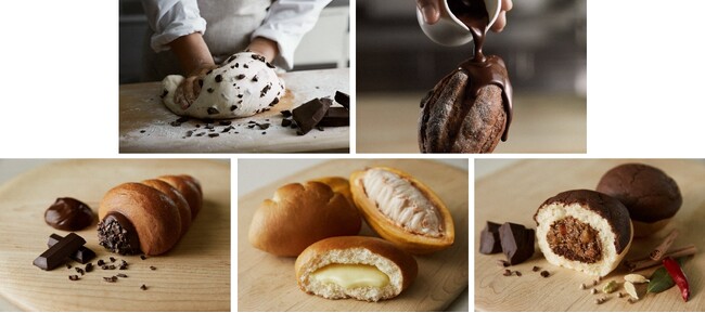 チョコレートを堪能できる「コロネ」は、ショコラ、ストロベリー、抹茶、3種類それぞれのクリームにあったパン生地を選定し、店内で仕上げるクリームとダークチョコレートのバーを入れ込みました。さらに、カカオフルーツジュースをカスタードの中に練りこんだ「カカオフルーツのクリームパン」、カカオ分55%のチョコレートをアクセントに加えたカレーフィリングがポイントの「ショコラティエのカレーパン」のほか、ベルギーのオープンサンドをゴディバ流にアレンジした「タルティーヌ」や、おやつやテーブルパンとしてご家族や友達と分けて食べるのにぴったりな「わけわけパン」、カカオの実のかたちの「ショコラの実」、「ふわもち生ドーナツ」、「ショコラステッキ」など、さまざまなオケージョンでお楽しみいただける豊富なメニューをご用意しました。