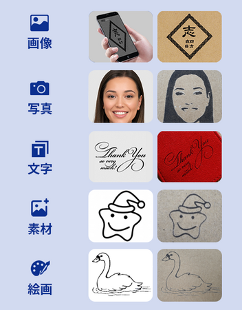 素材:アプリで内蔵の図形、画像などの素材を選択して彫刻します。