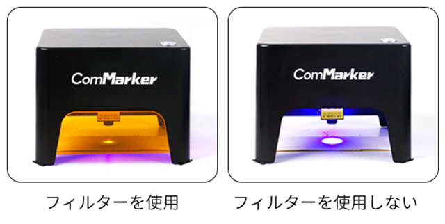 レーザーの光は眩しいので、目で直接見ると疲れやすくなったりすることがあります。レーザー用遮光フィルターをご使用いただくと、保護眼鏡の着用をしなくても彫刻時の様子を目視で確認することが可能です。
