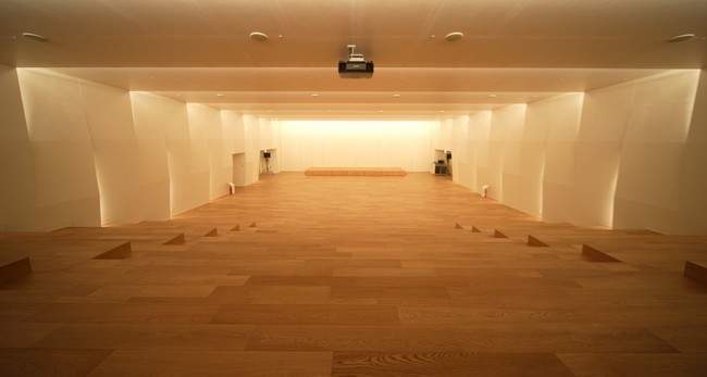 ・舞台と客席を備えた、広さ約350平方メートル の中規模多目的ホールで、舞台には280インチのスクリーンと、9,000~15,000ルーメンのプロジェクターを設置しています。セミナーやコンサートなど、多目的に利用できるホールです。