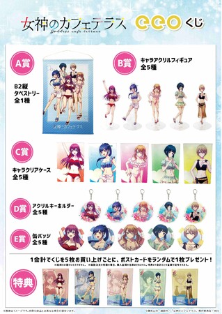 爽やかな水着姿の描き下ろしイラストを目いっぱい楽しめるグッズが勢揃いした、TVアニメ『女神のカフェテラス』の「eeoくじ」。新作グッズを手に入れれば、これから始まる第2期の放送がもっともっと楽しみになること間違いなし!