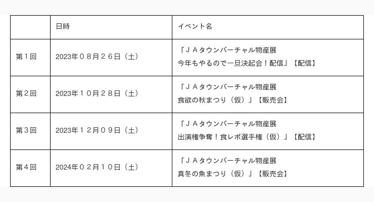 【「JAタウンバーチャル物産展2023」年間スケジュール】