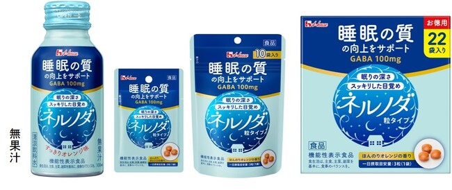 ハウスウェルネスフーズは、睡眠の質(眠りの深さ、すっきりとした目覚め)の向上に役立つ機能があることが報告されているGABAを配合した機能性表示食品、「ネルノダ」・「ネルノダ粒タイプ」〈1袋〉〈10袋〉〈22袋〉をリニューアルし、8月下旬より全国で順次発売いたします。今回のリニューアルでは、ドリンクは味わい、粒タイプは香りを改良して飲みやすさを向上させました。また、「睡眠の質の向上をサポート」というメッセージが目立つデザインに変更することで、睡眠に関するGABAの機能性が一目でわかるようになりました。