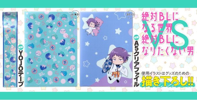 新潮社のwebマンガサイト「くらげバンチ」にて大人気連載中の『絶対BLになる世界VS絶対BLになりたくない男』(著・紺吉)から新グッズのYOJOテープとA5クリアファイル(2種)が本日発売となります。