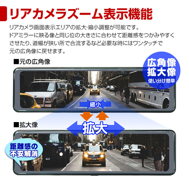 MAXWINからズーム機能搭載の爆光ミラー型前後ドライブレコーダーMDR-G012がネット通販限定で登場