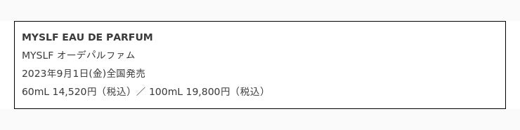 このDNAを受け継ぎ、さらなる進化を遂げた現代を生きる、次世代の男性に捧げる新フレグランス「MYSLF」
