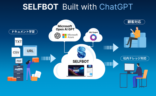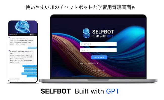 SELFBOTは、LLM(ChatGPT)を『誰でも』『手間なく』『スピーディ』に導入いただくために開発した自動学習型チャットボットサービスです。
