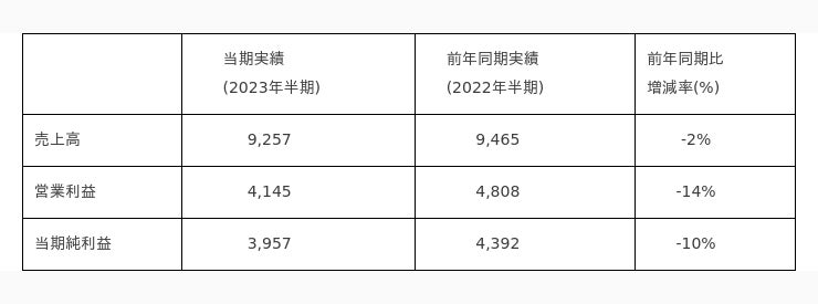 KRAFTONは韓国採択国際会計基準(K-IFRS)に基づき、2023年上半期の累計売上高は9,257億ウォン、営業利益4,145億ウォン、当期純利益3,957億ウォンを記録しました。また、第2四半期は費用効率化の方針を堅持しましたが閑散期の影響で売上高3,871億ウォン、営業利益1,315億ウォン、当期純利益1,285億ウォンとなりました。