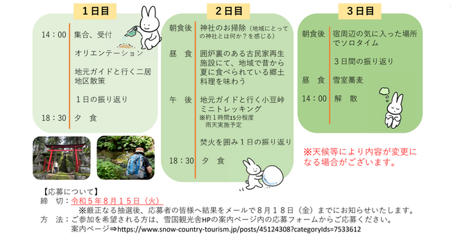 緑のリトリートin湯沢町二居(ふたい)モニターツアー行程表