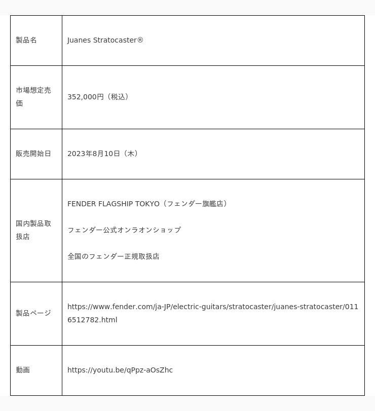 「フアネスの音楽への情熱と社会変革へのコミットメントは何十年もの間、世界中のコミュニティーにインスピレーションを与えてきましたが、今日の音楽業界におけるラテンの影響の拡大に伴い、その関連性はさらに高まっていると感じています。ラテンアーティストのシグネイチャーモデルのキャンペーンは、フェンダー史上初であり、私たちはラテン音楽文化の多大なる影響を最前線に発信し続けられることをとても誇りに思います。」