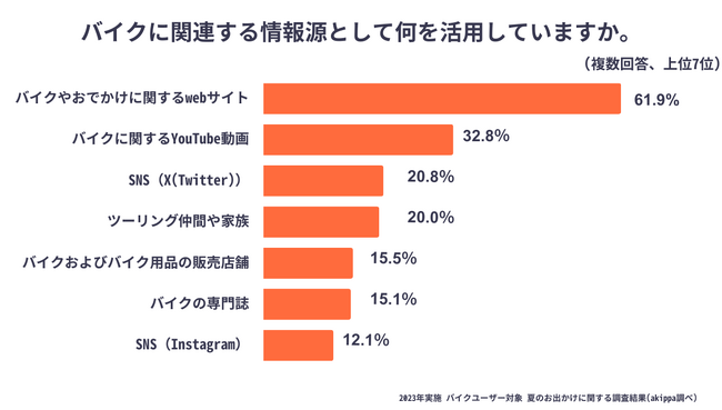 ・Webサイトや周囲の口コミでバイクに関する情報を収集する傾向。