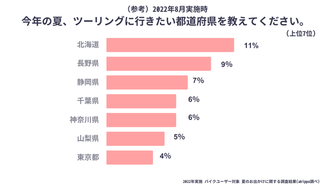 ・夏のツーリング先としては引き続き長野県、北海道が人気。