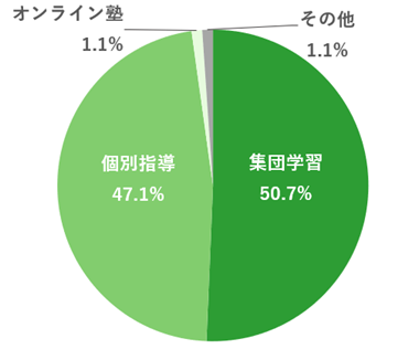 l 塾の形態は集団学習と個別指導で3.6pt差 去年より個別指導が増加傾向に