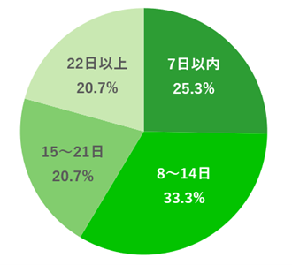 夏期講習の日数で最も多かったのは「8~14 日」で 33.3%、形態は「集団学習」で 50.7%という結果となりました。昨年度調査で個別指導は39.3%でしたが今年度は47.1%と、7.8ptアップとなりました。また夏期講習に初めて通わせた学年は中学1年生が最も票が多く、28.7%という結果となりました。