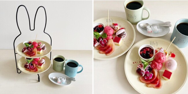 「ディック・ブルーナ テーブルPOP-UP SHOP in 渋谷」でお買い物をしたレシートを持参して、期間中に「ディック・ブルーナ テーブル 横浜」に来店しアフターヌーンスイーツセット(写真下)を注文すると、オリジナルコースター2枚プレゼントの特典が受けられます。※特典期間:2023年8月21日~9月30日