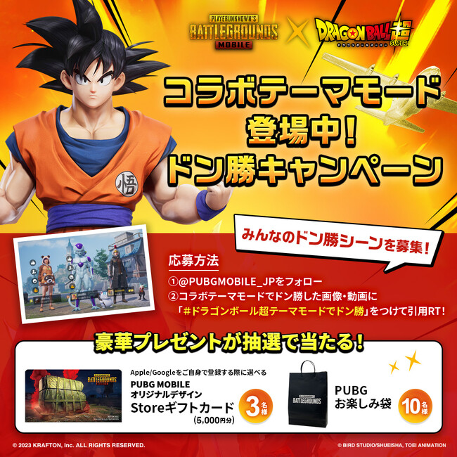 KRAFTON JAPAN株式会社(代表取締役 イ・カンソク)は、「PUBG MOBILE」において「ドラゴンボール超」とのコラボレーション第2弾のイベントを開始いたしました。