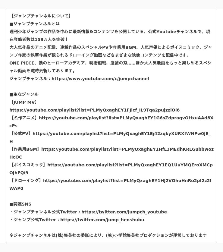 ・ジャンプチャンネル公式X(前Twitter):https://twitter.com/jumpch_youtube