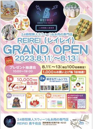 8/11より24時間スウィーツとお肉の無人販売店『REIREI』がオープンいたしました!