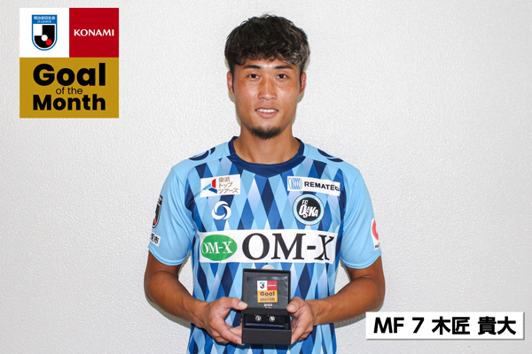 各月の明治安田生命Jリーグにおいて、最も優れたゴールを表彰する「明治安田生命Jリーグ KONAMI 月間ベストゴール」の7月度の受賞ゴールが決定し、J3リーグでは、木匠貴大選手による第16節(7月1日(土) vs.鳥取)の90+5分に決めたゴールが受賞いたしましたのでお知らせします。