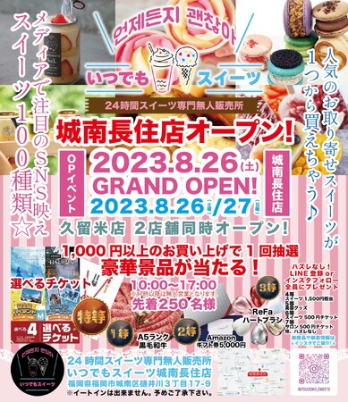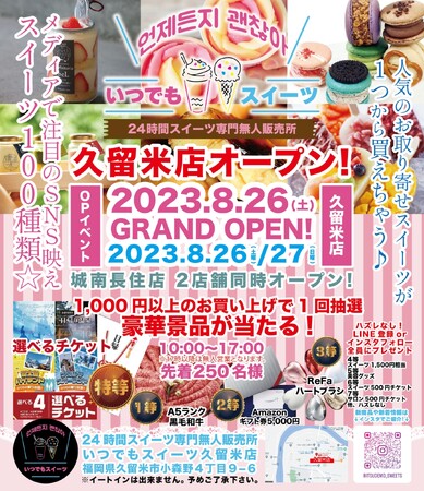 福岡、広島で大人気の『いつでもスイーツ』が福岡市城南区/久留米市に福岡県2店舗同時出店!