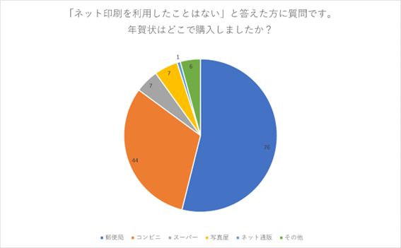 意外にも、ネット通販は利用者が1人しかおらず、年賀状を自宅で作る人は直接郵便局や店舗で購入しているようです。