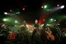 いかした革ジャン、リーゼント、銀のバックルにエンジニアブーツ。「行くぞ!」と一声吼えると、ガイコツマイクをひっつかみ、1曲目「ロカビリーカーニバル」からぶっ飛ばす上澤津。フロアを埋めたオーディエンスに笑いかけ、拳を振り上げ、「東京バーニングタウン」「傷だらけのパラダイス」とアップテンポのMAGICナンバーを畳みかける。ホーン隊を含む7人のバンドメンバーは凄腕揃いで、疾走感とスウィング感を兼ね備えたご機嫌なサウンドで後ろからガンガン煽る。